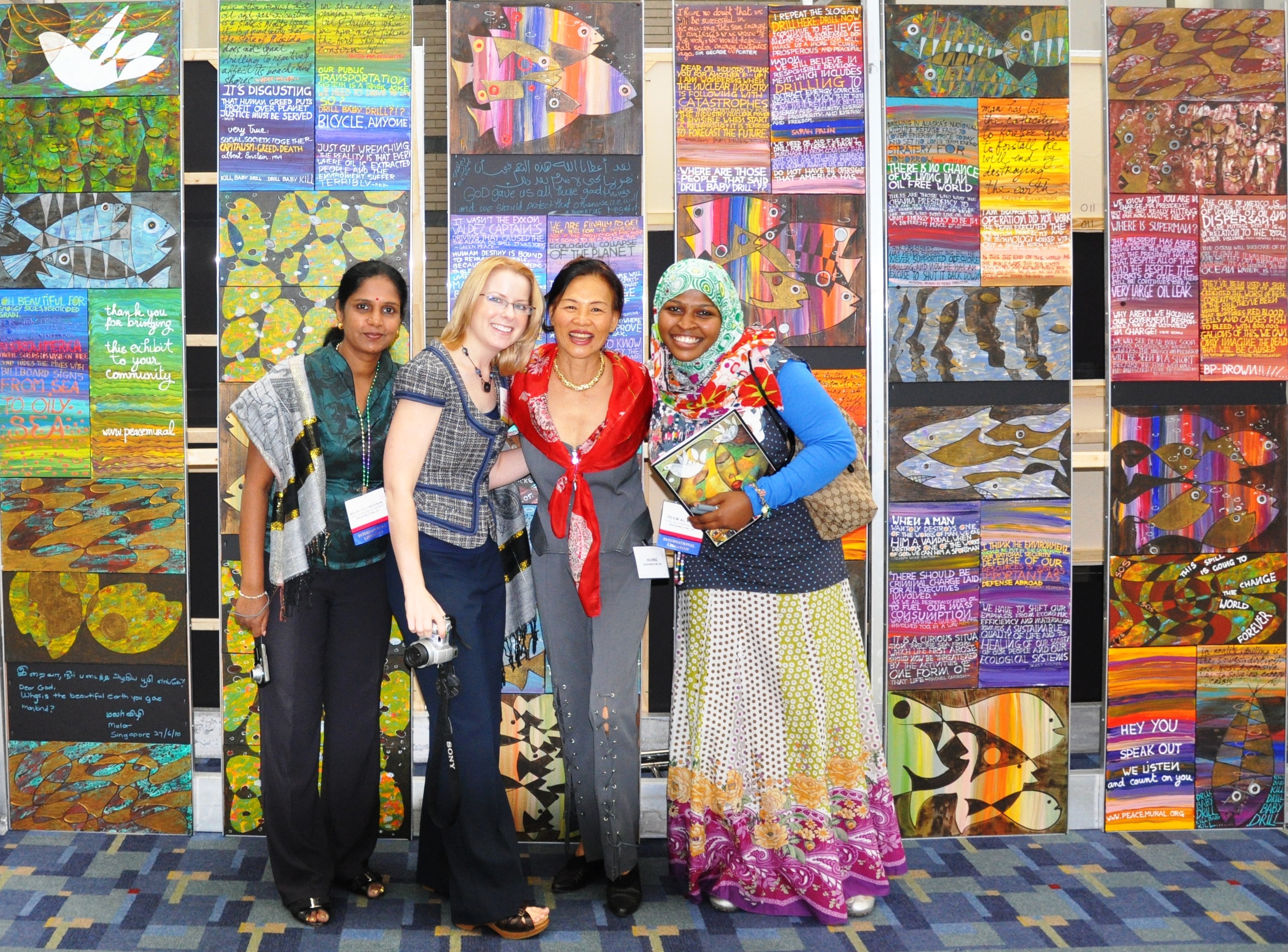 Huong BP oil spill mural was made in 2010, right after the catastrophic oil spill. It features poignant reminders of the greed of people that chose and still choose money over our environment. A 100 foot long by 8-foot tall Mural, a collection of 120 paintings about the current BP oil spill by artist Huong was unveiled in Washington DC at Walter E. Washington Convention Center during the 2010 Annual Conference of the American Library Association. Displayed for 3 days only and exclusively viewed by 25,000 librarians and attendants who visited the Capitol this year.